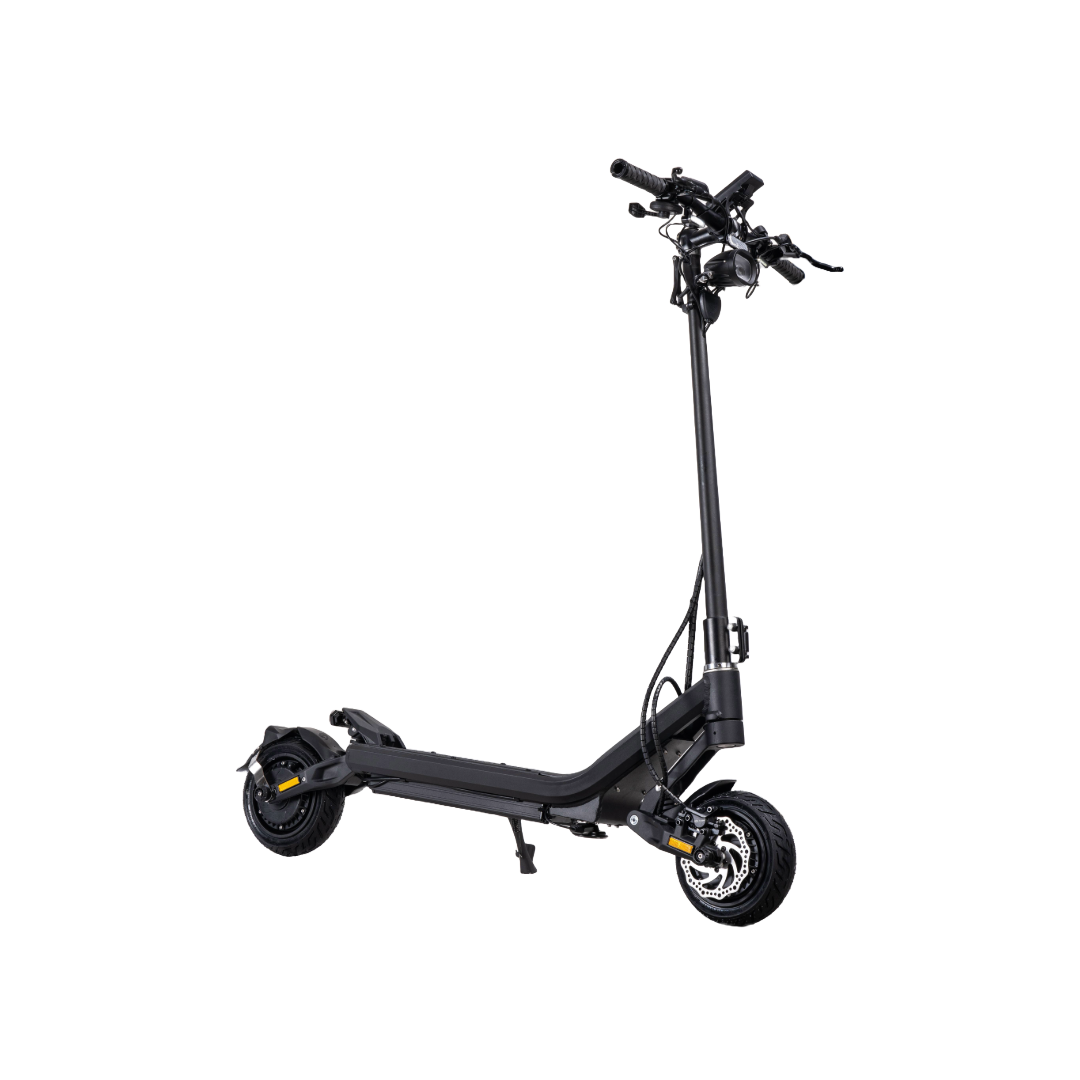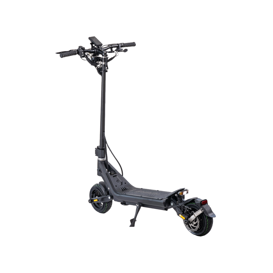 La Nami Stellar est un modèle signé Nami Electric, conçu pour offrir une conduite fluide et performante en toutes circonstances. Avec son double moteur de 2×1500 W (5300 W en crête) et sa batterie 60V 35Ah, elle peut atteindre 80 km/h (sur voie privée) et parcourir jusqu’à 115 km. Elle s’impose ainsi comme une trottinette électrique haut de gamme adaptée aux trajets longs comme aux usages sportifs.